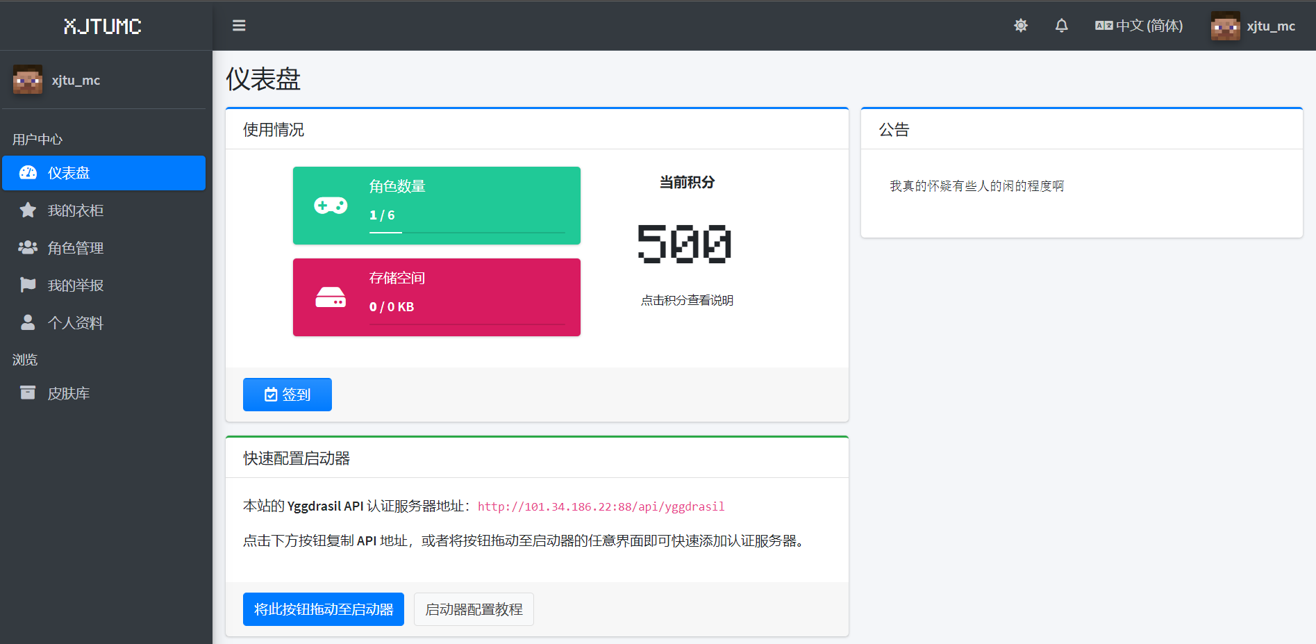 皮肤站相当于一个用户中心,您在皮肤站的账号是您畅游XJTUMC的通行证。通过它,您也可以直接加入其他高校的服务器游玩。本文将详细介绍皮肤站的注册和使用方法。